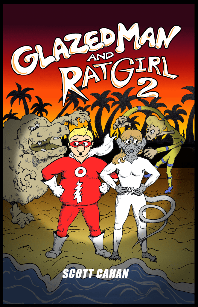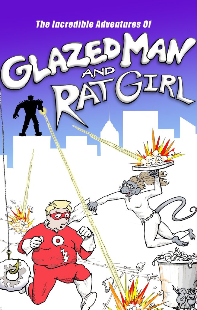 Johnny Crumb’s boring life was going nowhere fast until one shocking evening when his life was turned upside down. Suddenly his wildest dreams were coming true;… fighting criminals with his new superpowers,… discovering the girl of his dreams,… and eating donuts to his heart’s desire. Martha Maybee was a brilliant but lonely scientist. Her pathetic life hit a new low when she was trapped in a weird laboratory with a group of power-hungry, talking rats. Soon, sweet and shy Martha was fighting evil and doing physical feats no ordinary human could do. When a villain named RoboCreep terrorizes the city of Megalopolis, there are only two people foolish enough to stand in his way, Glazed Man and Rat Girl. This novel/comic book includes 100 illustrations. Glazed Man and Rat Girl is a superhero tale like no other. It’s a wild ride full of humor, action, adventure, and heroes who are truly good.